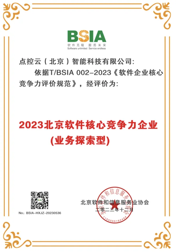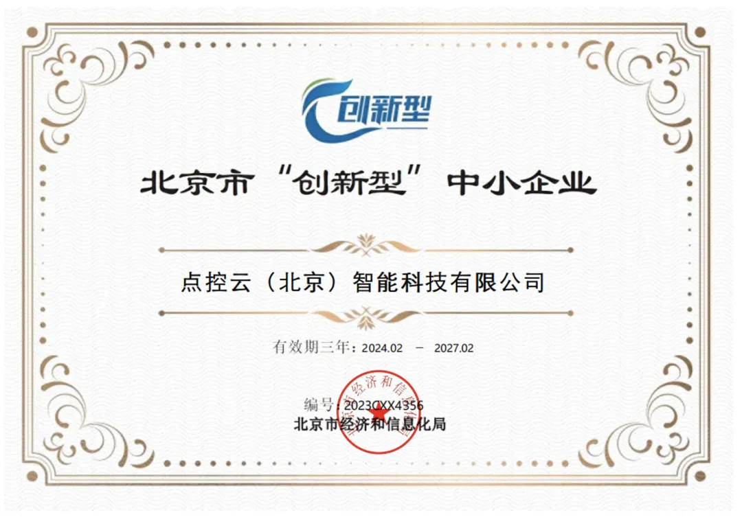点控云荣获“2023北京市“创新型”中小企业证书”;