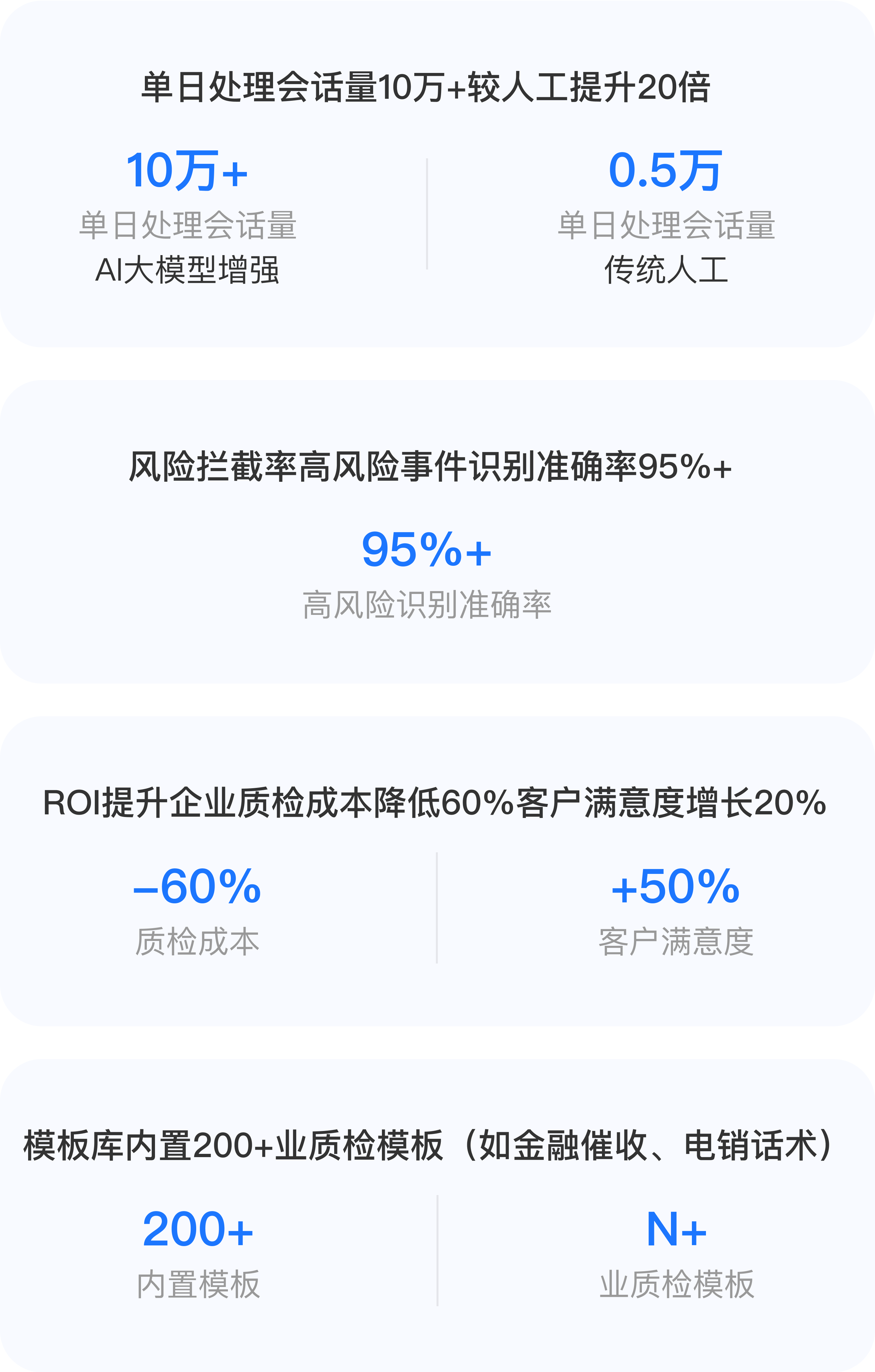 - 深度语义分析检测抢话、语速、情绪、空白音20余服务维度