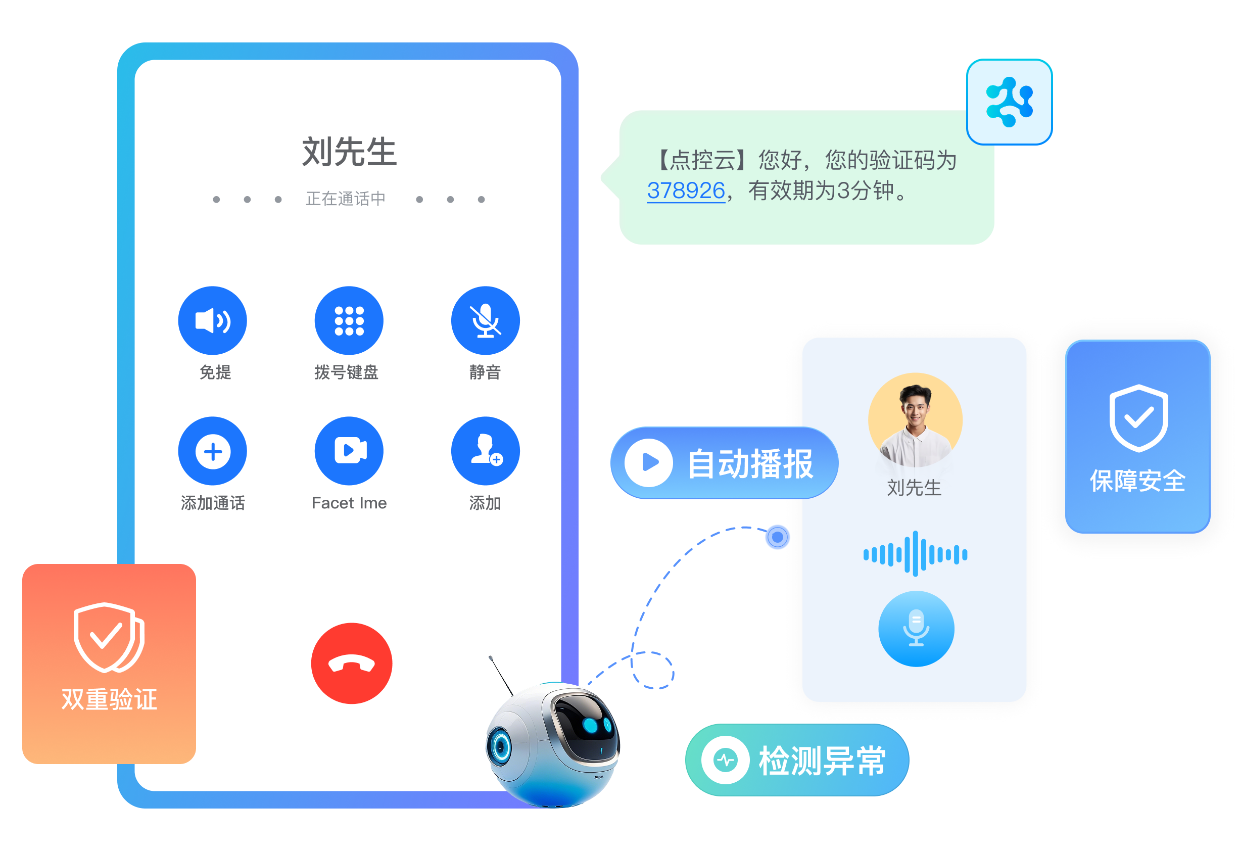 功能描述:支持动态语音验证码+场景化问答双重验证,AI自动识别异常号码与机器人攻击,保障注册支付等高安全性场景