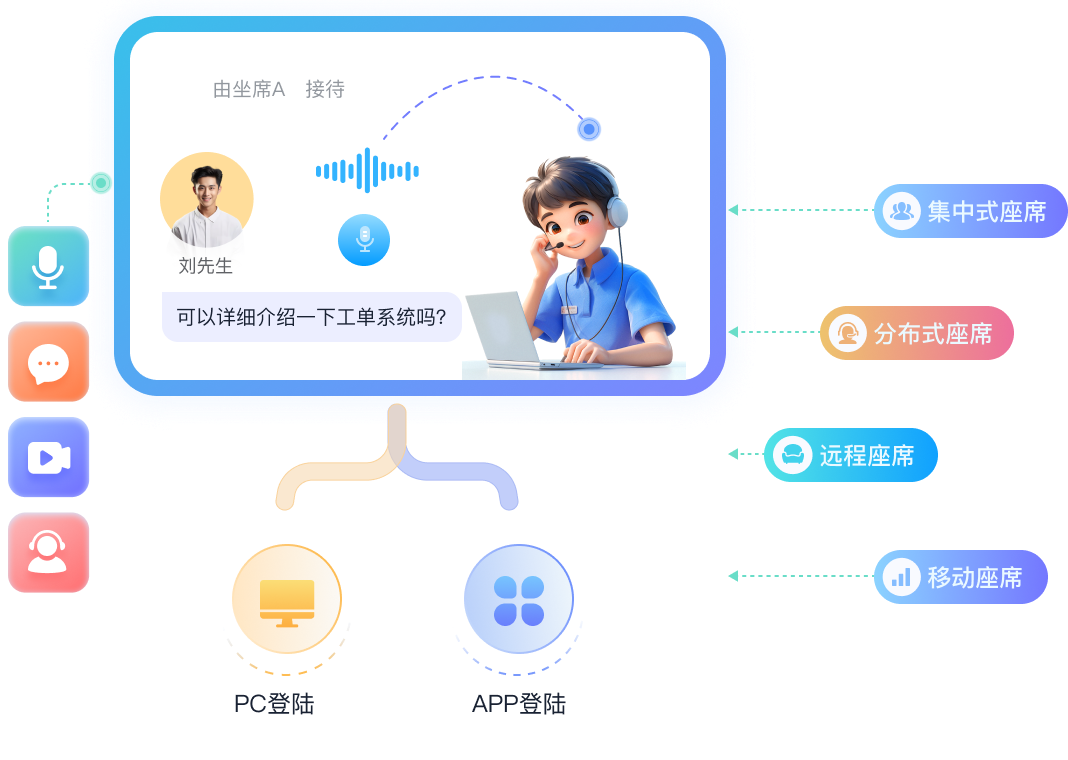 坐席工作台支持PC和移动APP登录,坐席可以随时随地处理客户服务请求